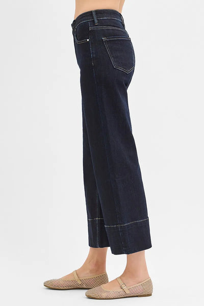 RISEN Tummy Control High Rise Crop Wide Seam Detailed Jeans